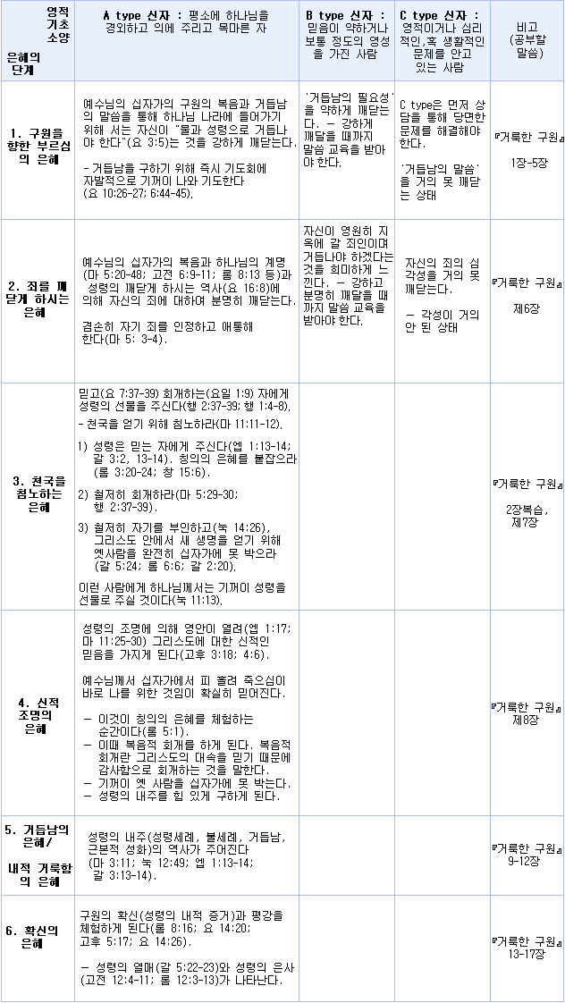 * ÀºÇý ¾ÈÀÇ ¼ºÀå µµÇ¥ ÇØ¼³ Áú¹®: ÁËÀÎÀÎ Àΰ£ÀÌ ±×¸®½ºµµÀÇ ±¸¿ø ÀºÇý¸¦ ¾î¶»°Ô ¹Þ½À´Ï±î? ´ä: ³»°¡ ±×¸®½ºµµÀÇ ½ÊÀÚ°¡ÀÇ º¹À½À» ¹Ï°í ȸ°³ÇÒ ¶§, ¼º·É²²¼ ½ÅÀûÀÎ ¹ÏÀ½À» Áֽðí, º¹À½Àû ȸ°³¸¦ Áֽðí,